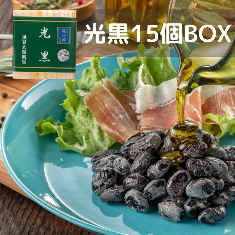 ポリフェノールたっぷり! 女性に人気の黒豆納豆 北海道産光黒大豆使用 オリーブオイルで【送料無料】 二代目福治郎 【光黒納豆15個BOX】 黒豆納豆