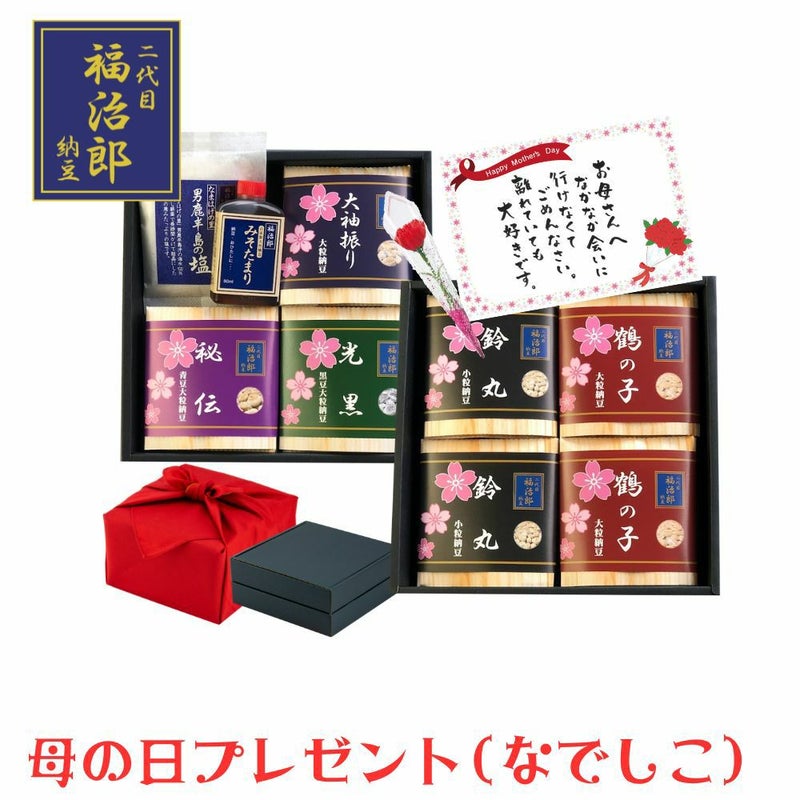 贈り物1つで、日々は変わる 母の日 いつもと違う贈り物に高級納豆 【送料込】 母の日 ギフト プレゼント 高級納豆【なでしこセット】7袋入 2段重箱入 風呂敷包み 男鹿半島の塩・みそたまり メッセージカード 母の日専用のし付 送料込