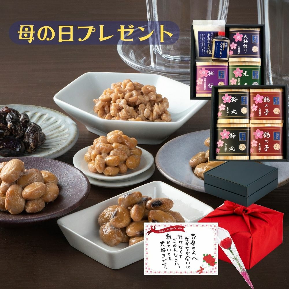 他の画像を見る 贈り物1つで、日々は変わる 母の日 いつもと違う贈り物に高級納豆 【送料込】 母の日 ギフト プレゼント 高級納豆【なでしこセット】7袋入 2段重箱入 風呂敷包み 男鹿半島の塩・みそたまり メッセージカード 母の日専用のし付 送料込 人気商品!! 送料込み クール便でお届け 価格 ¥ 6,804 税込 販売を終了しました。 母の日ギフト プレゼント 2段重箱入り 専用ギフト カーネーション・カード・熨斗付き お気に入りに登録する